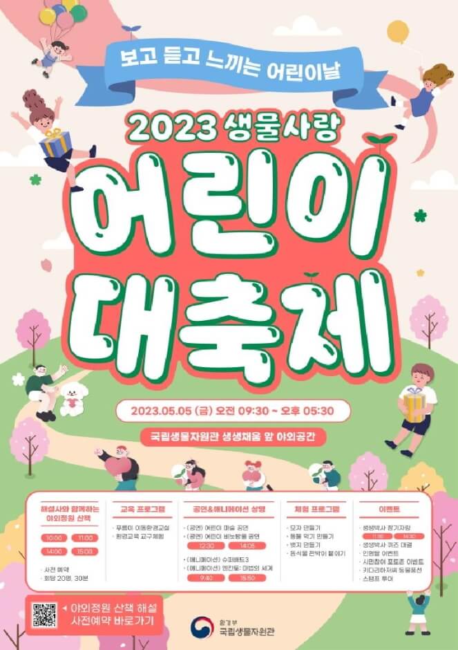 다가오는 5월 5일! <보고 듣고 느끼는 어린이날, 2023 생물사랑 어린이 대축제>가 개최됩니다! 어린...